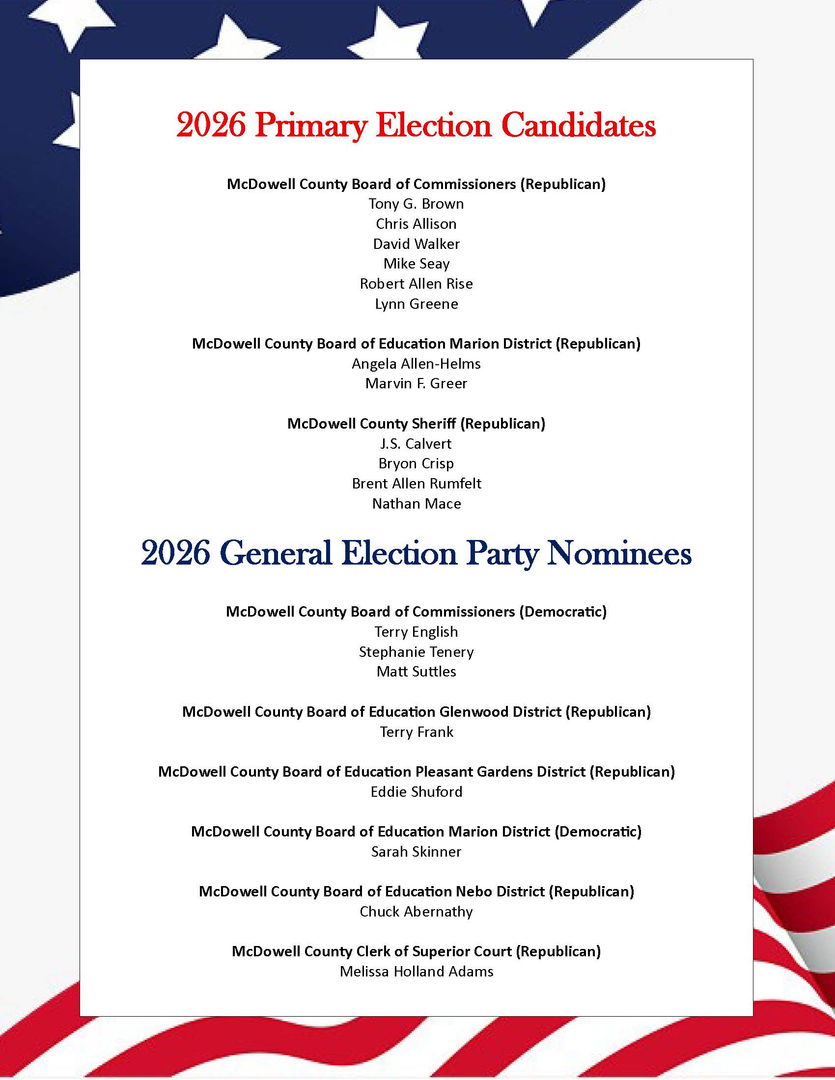 For accurate information about NC elections, go to NCSBE.gov or contact McDowell County Board of Elections at 828-659-0834.